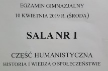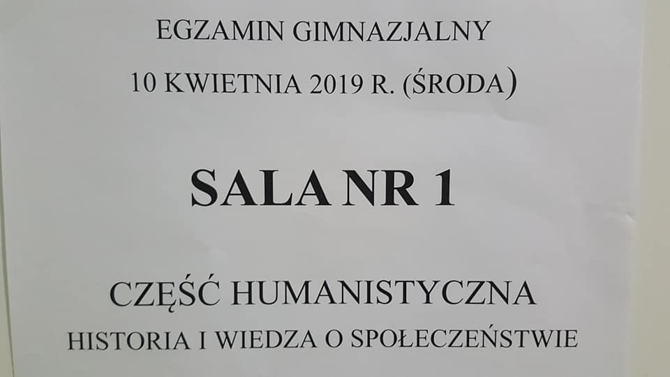 Egzamin gimnazjalny 2019 z historii i wiedzy o społeczeństwie rozpoczął się o godzinie 9:00. Na jego rozwiązanie uczniowie mieli 60 minut (uczniowie z dysleksją 80 minut). Potem nastąpiła krótka przerwa, a tuż po niej odbył się egzamin gimnazjalny z języka polskiego. Ta część potrwa 90 minut (dla dyslektyków 135 minut).